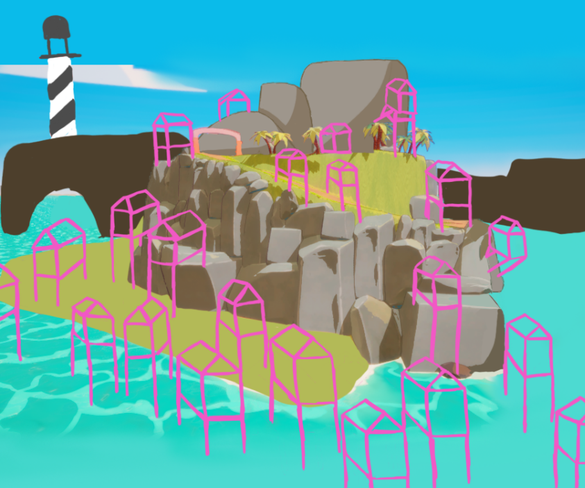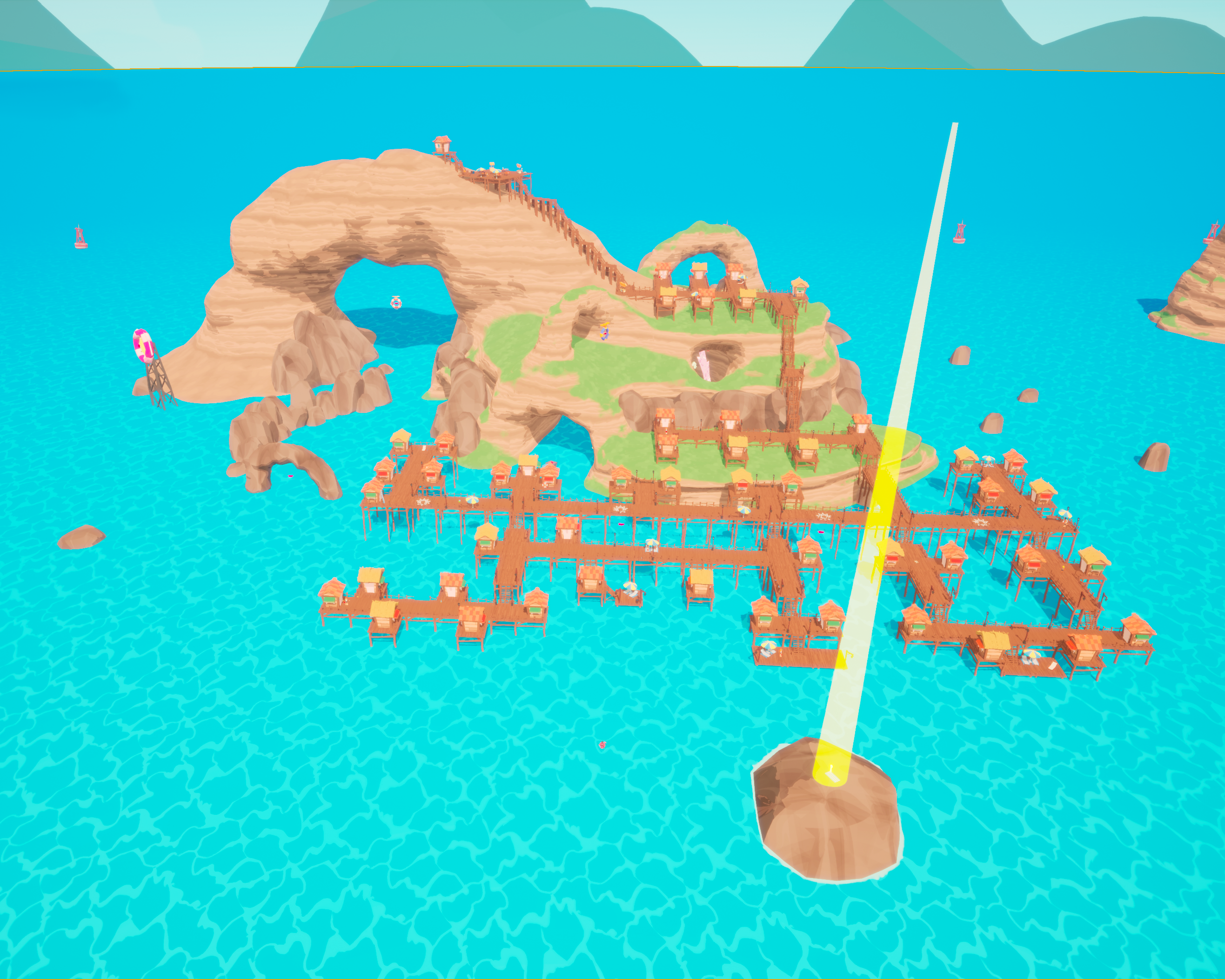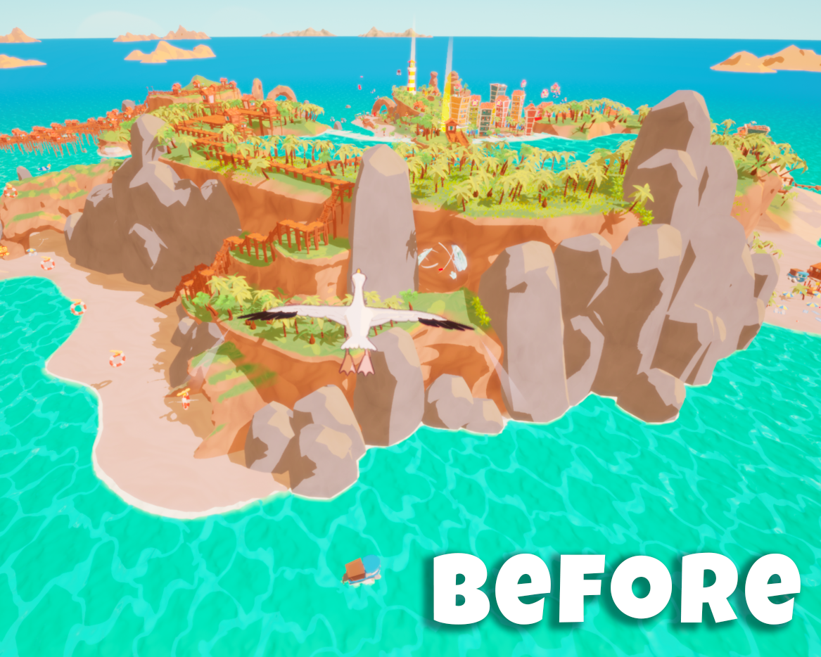 - Created an Island offshore with Stilts and tunnels that the player can fly through