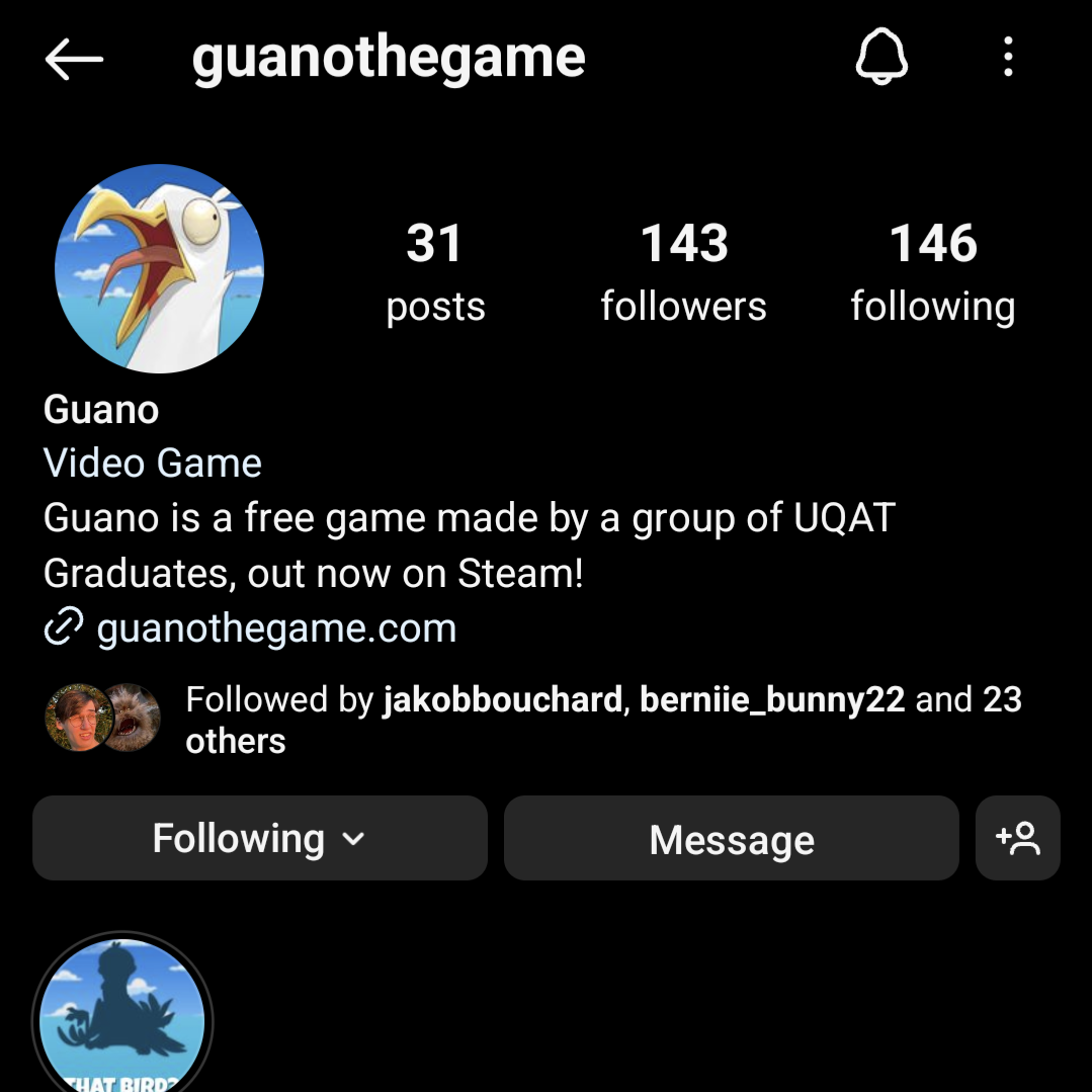 Guano is our final University project. It was made over the course of 2 semesters with a total team of about 25 students. The goal of the project was to make a game from start to finish: starting at the ideation stage and ending with the release of the game on Steam, to simulate and experience a studio setting and the entire pipeline of a game release.