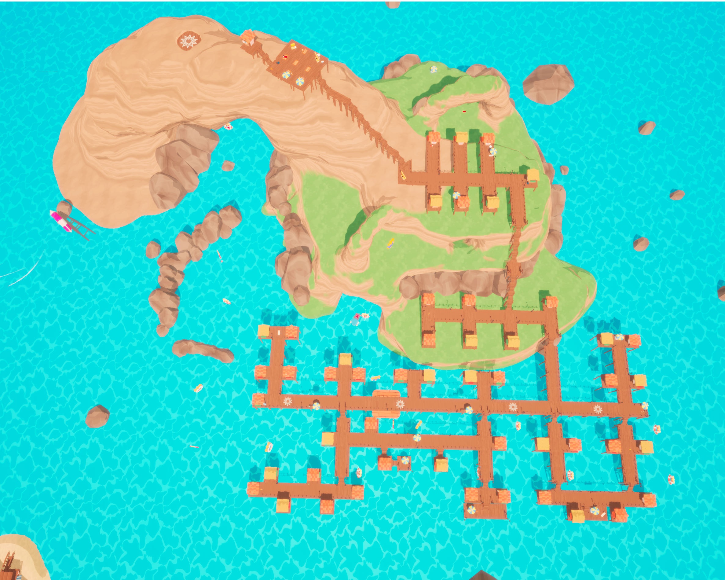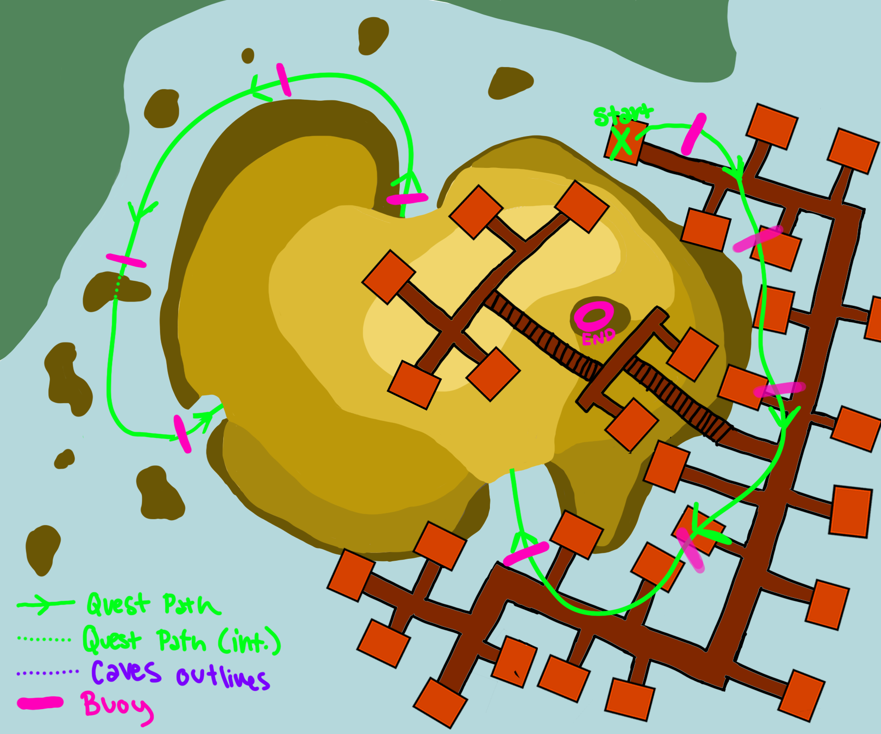 - Created a buoy parkour quest that uses the stilts and tunnels as obstacles