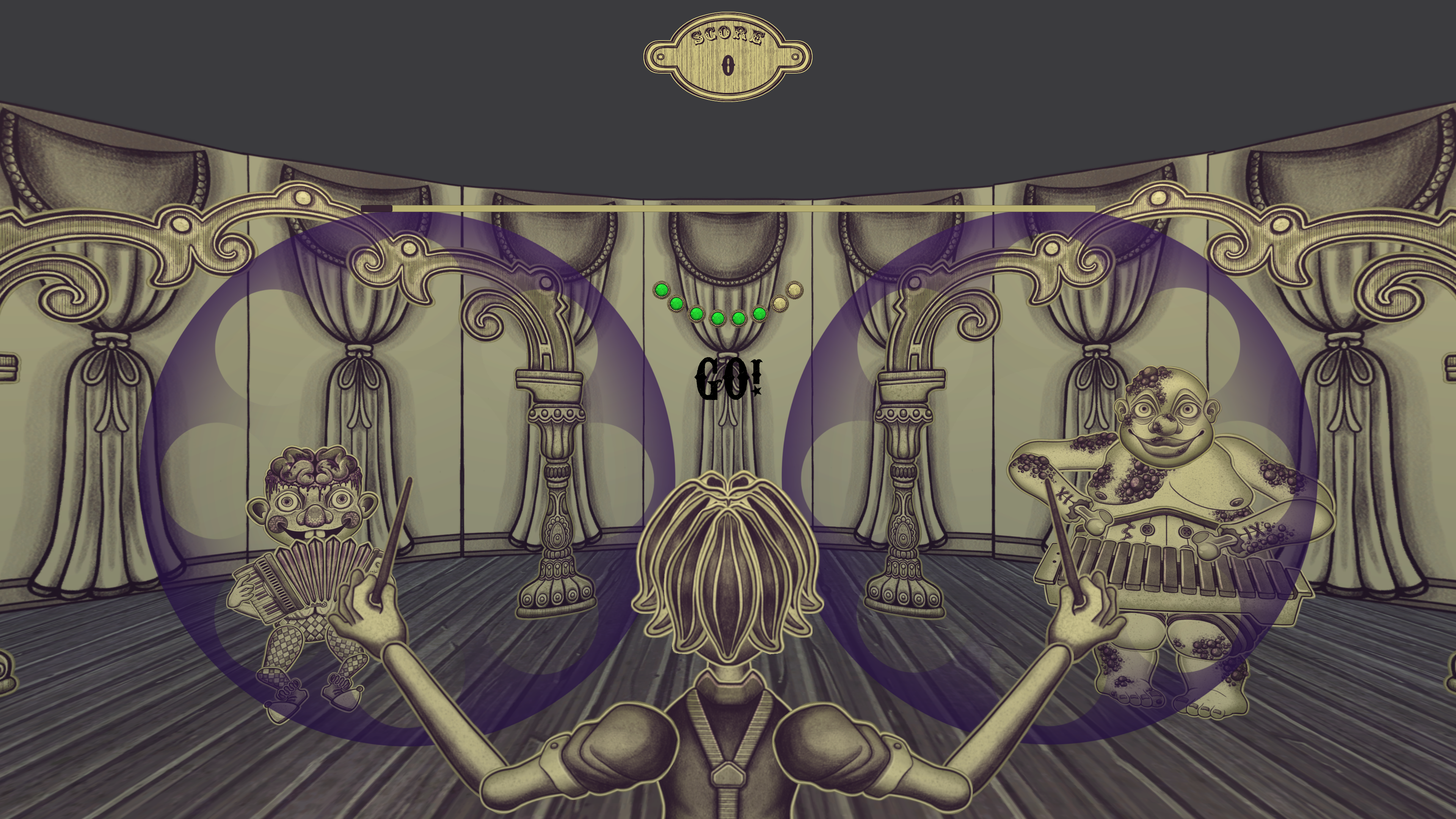 Symphony of the Dead is a rhythm game where you play as the conductor of a creepy circus of zombie musicians hungry for flesh – your flesh. The only way to keep them distracted enough to not eat you: Keep the music going!